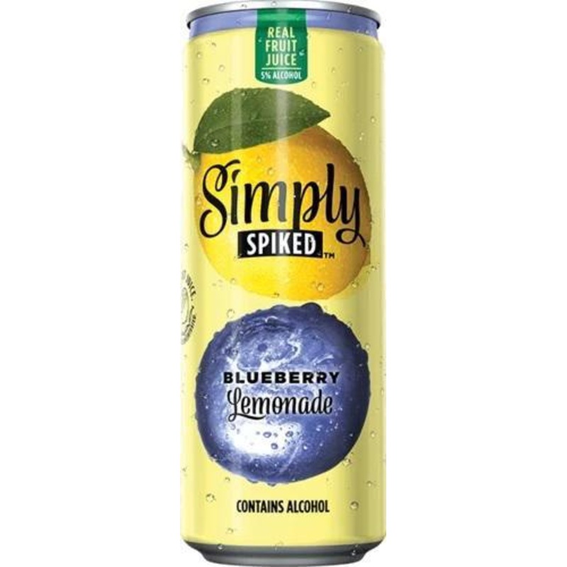 Enjoy delightfully refreshing spiked lemonade, in this Simply Spiked Blueberry Hard Lemonade single. Made with 5% real fruit juice (squeezed, then concentrated). This 24 fl oz can of Simply Spiked Blueberry Lemonade with 5% ABV and the flavor of juicy lemo