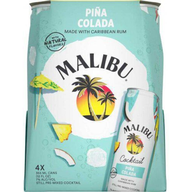 Introducing Malibu's new line of canned cocktails delicious, ready-to-sip Pia Coladas for your next hangout, all in a sleek 12 oz can. Pop open a Malibu Pia Colada in a can for a taste of juicy pineapple balanced with sweet coconut flavor and smooth Caribb