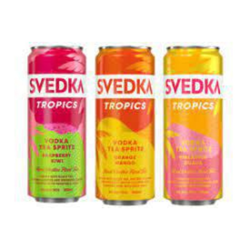 SVEDKA Tropics Vodka Tea Spritz Ready to Drink Cocktail combines delicious fruit flavors with real tea for a bold yet smooth taste that is refreshing and fruit-forward without being overly sweet. Available in a canned cocktail variety pack of three delicio