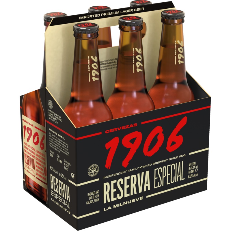 Estrella Galicia’s 1906 Reserve is a balanced and malt-forward Helles Bock brewed and bottled in Galicia, Spain. Originally createdmore than fifty years ago, 1906 Reserve has grown to be loved and appreciated around the world, including winning multiple World Beer Awards Gold 2019, Monde Selection Gold 2019, and International Taste Institute Gold 2019